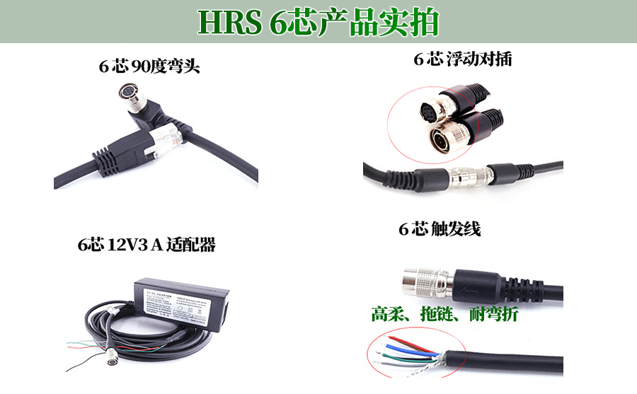 工業(yè)相機(jī)Basler電源線海康衛(wèi)視Baumer屏蔽觸發(fā)線HRS廣瀨6芯插頭裝孔