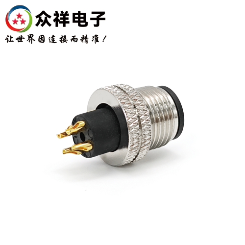 描述:M12螺紋連接器,注塑款,金屬材質(zhì),公座,焊線式
